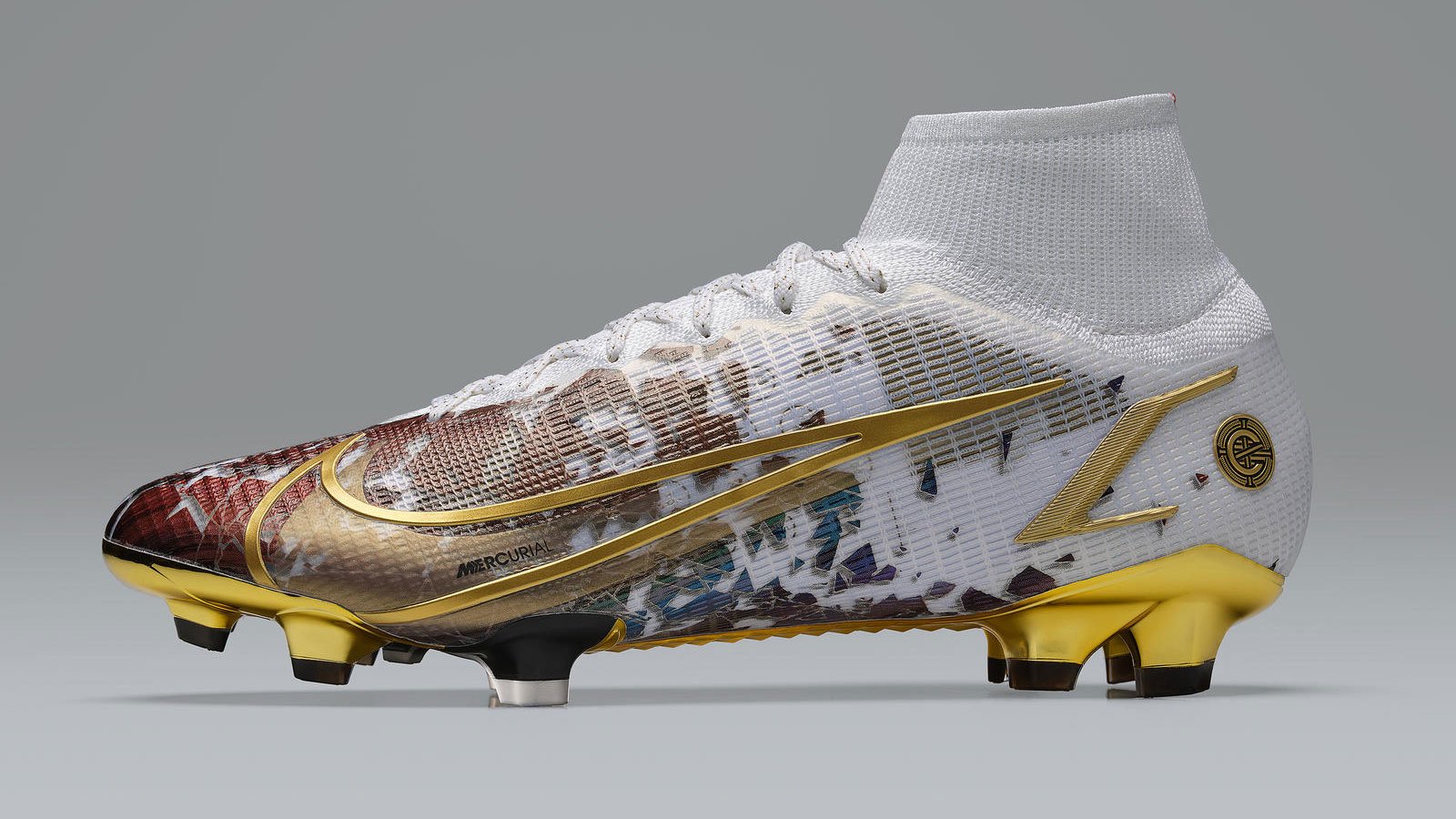 Nike also created a commemorative CR110 boot (the 110th goal was the one that set the record, eclipsing Iran’s Ali Daei). Pairs will be given to 110 rising stars in the countries where Ronaldo has played club football: Portugal, England, Spain and Italy. The shoe’s design is a visual representation of records being broken.