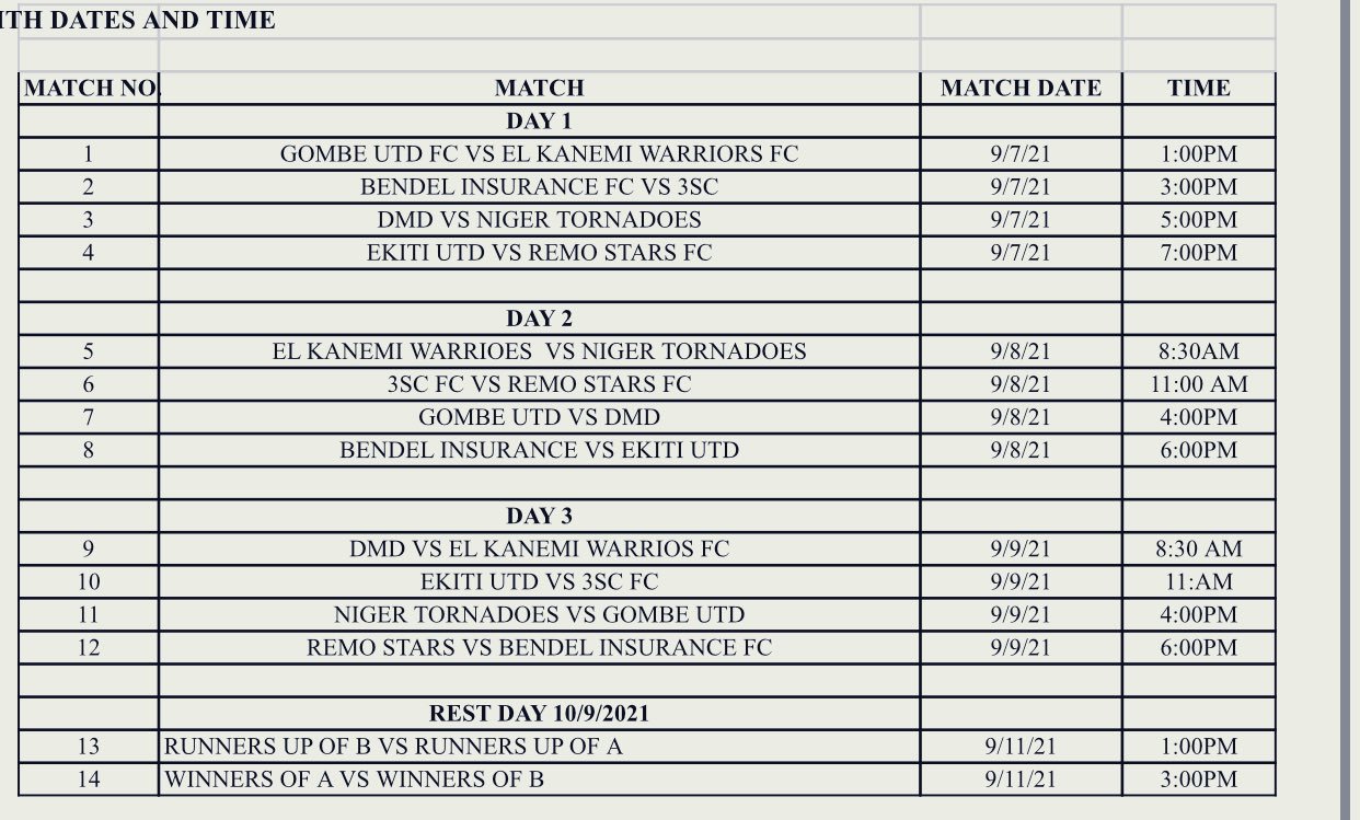 The tournament will begin on Tuesday, September 7th, as organizers released detailed fixtures and game time. All matches will be played at Nnamdi Azikwe Stadium, Enugu.