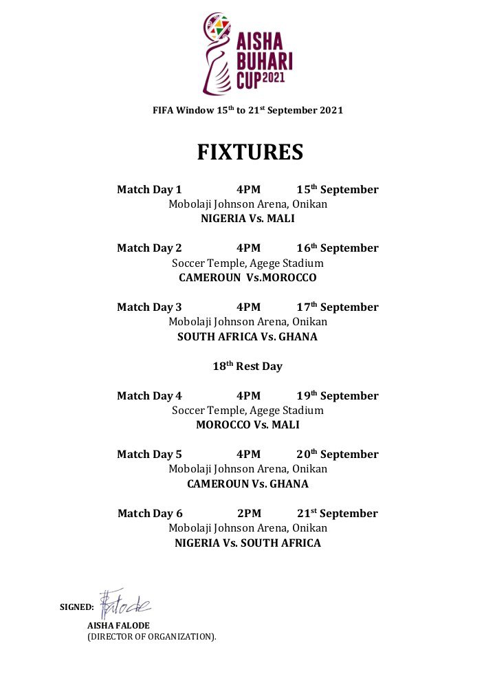 The event which has been endorsed by world football governing body, FIFA, will commence on Wednesday, 15th of September 2021.