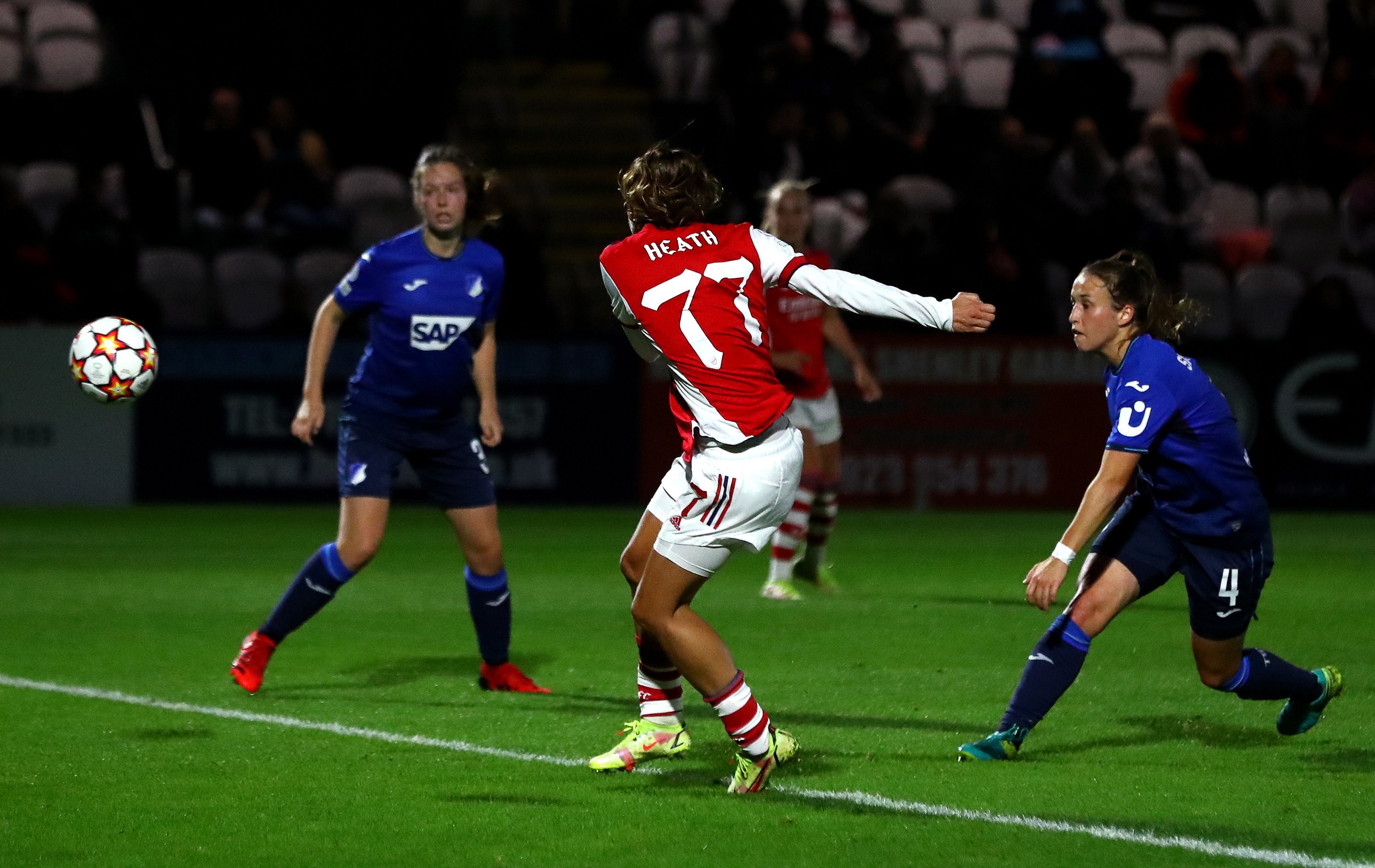 After losing 4-1 at Barcelona in their opening group game, Arsenal bounced back with a comfortable win over Hoffenheim. Beth Mead was clipped by Michaela Specht in box as the referee pointed to penalty spot, Kim Little stepped forward and converted her Arsenal’s fourth penalty becoming only the ninth woman to reach 40 UEFA club competition goals.