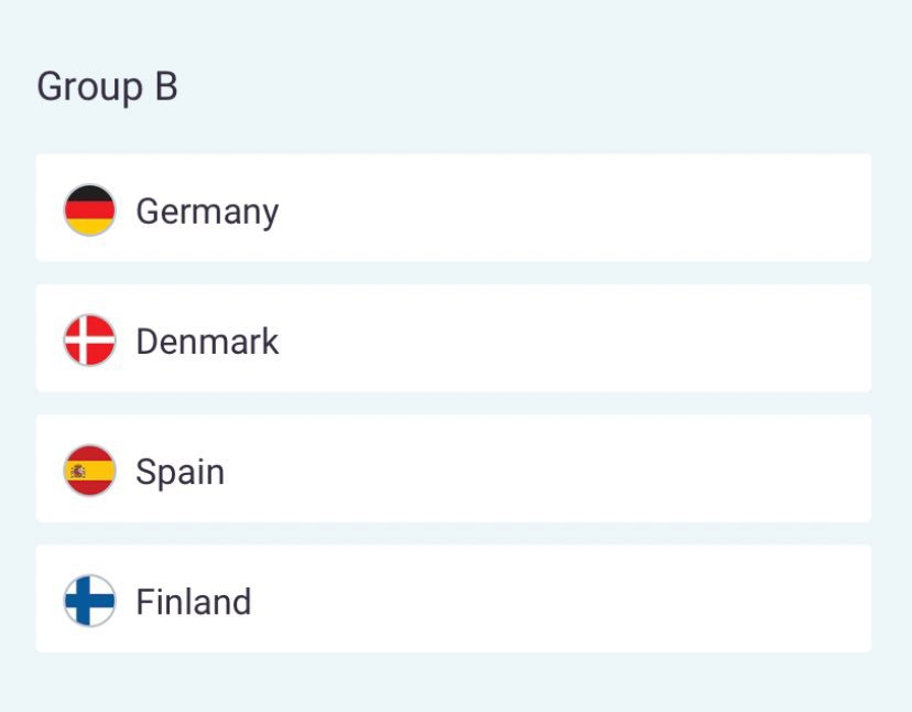 Group B sees European heavyweights Germany and Spain drawn together while Denmark and Finland also feature.