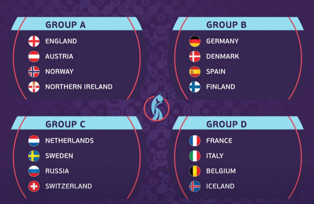 Group C is made up of The Netherlands, Sweden, Switzerland and Russia while Group D contains France, Italy, Belgium and