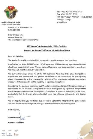 The Jordan women’s team have requested a ‘gender verification check’ against an Iranian goalkeeper who played against them.