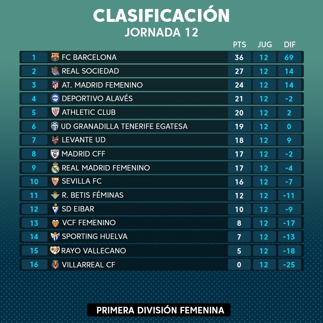 Third-placed Atletico Madrid earned a hard fought 2-1 victory against Levante. Aissatou Tounkara opened the scoring for Madrid in the 22nd minute before Giovana Gueiroz’s equaliser in the 41st minute. Barbara Latorre then scored the winning goal for Atletico Madrid in the 62nd minute.