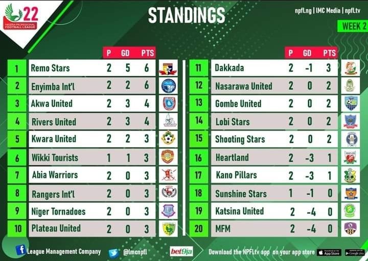 Kano Pillars, Sunshine Stars and MFM are the only sides yet to score a goal in the NPFL this season after matchday two.