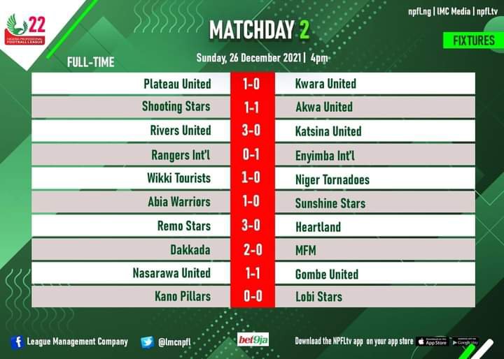 The Nigeria Professional Football League entered its second match day on boxing day with a total of 16 goals scored across ten match centres in the country.