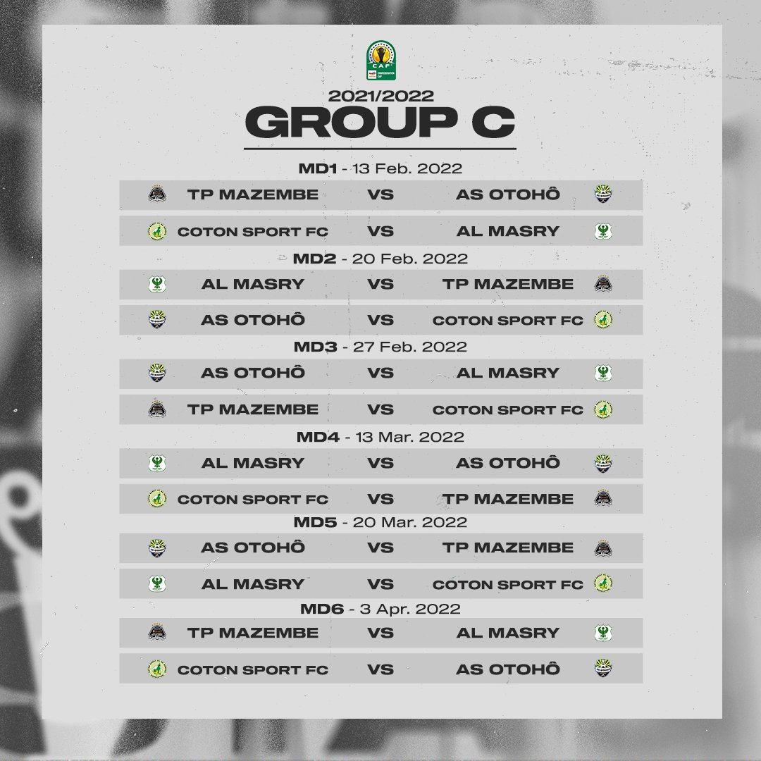 Group C consists of TP Mazembe, Coton Sport, Al Masry and AS Otoho.