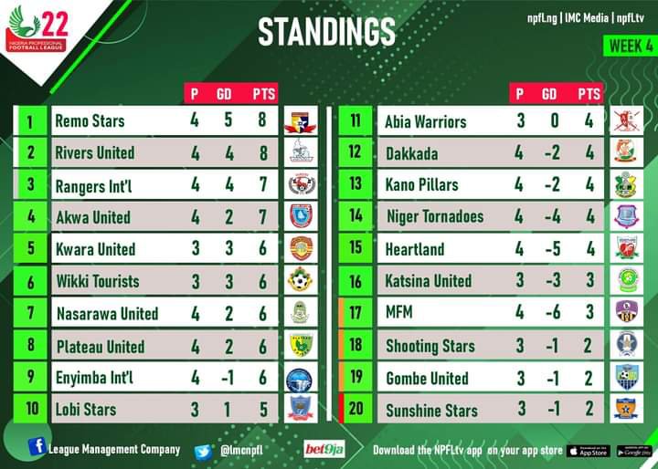 Enyimba suffered a back-to-back defeat under Finidi George, while Remo Stars held Dakkada at home to maintained top spot. Rangers leapfrog to the third position, while Akwa United stands on fourth position with same points, as Sunshine rocks bottom log.