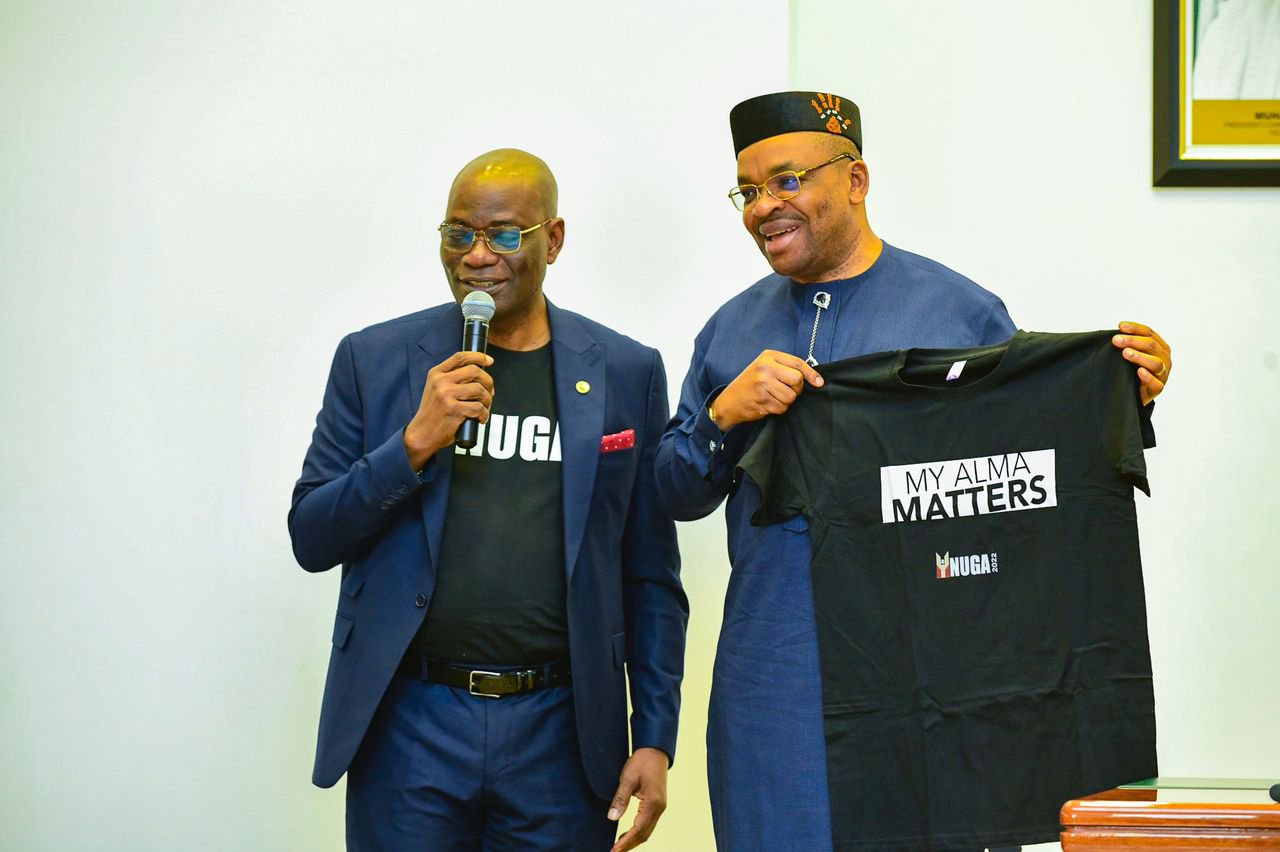 UNILAG alumnus, Governor Udom Emmanuel of Akwa-Ibom was presented the NUGA torch by the delegation from the University of Lagos, led by the Vice- Chancellor, Prof. Oluwatoyin Ogundipe, FAS, at Government House, Uyo, on Tuesday.