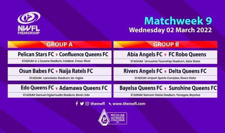 Week 9 is headlined by the premiere rivalry of Nigeria Women Football as Rivers Angels welcome to Porthacourt, a very determined Delta Queens team, who haven’t lost a game so far this season.