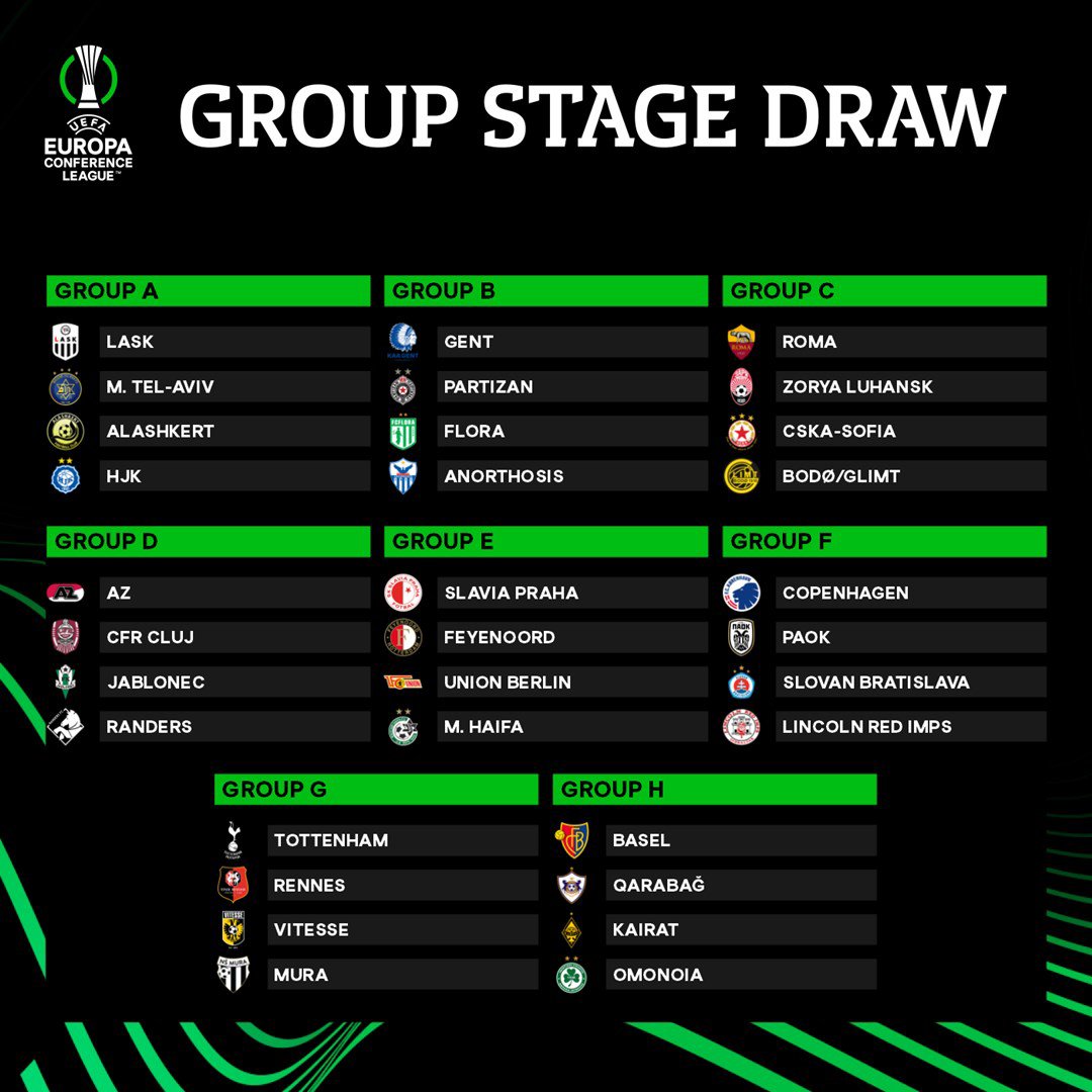 Tottenham will play Rennes, Vitesse and NS Mura of Slovenia in Group G.
