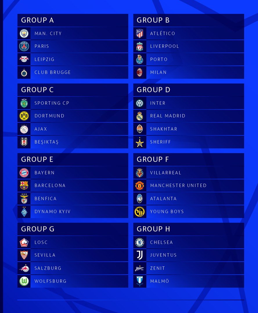Other interesting fixtures include; Manchester United in the same group as their last season Europa League final opponent. Inter Milan in the same group as Real Madrid, and the defending Champions share group with Juventus.