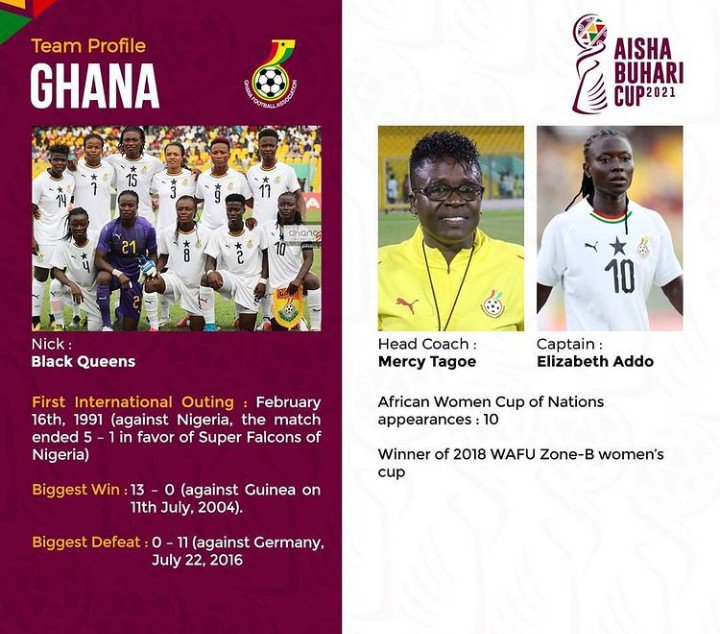 Head Coach of the Ghana Women’s National Team, Mercy Tagoe has named a provisional 30-woman squad ahead of the upcoming Aisha Buhari Cup. The Invitational Women’s Football Tournament is scheduled for 13th – 21st September 2021 in Lagos, Nigeria.